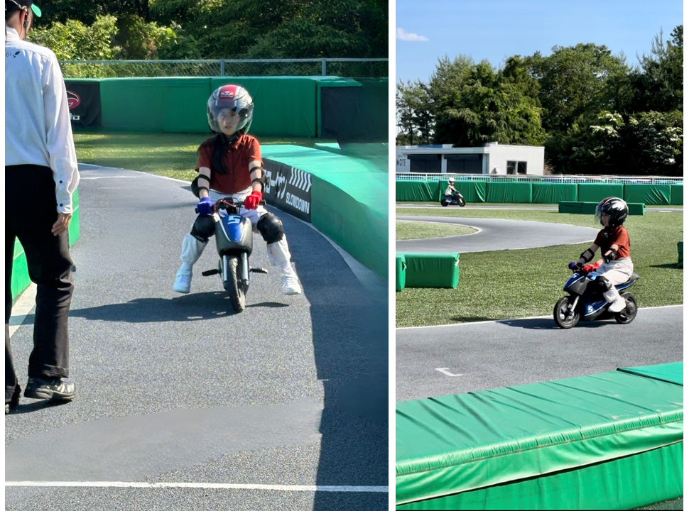 本格的なバイクに乗り、広いコースを走ることができ、子どもたちも大喜びです。